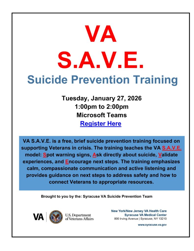 The American Legion has established a national “Be the One” initiative to help veterans reach out in their time of need. No veteran needs to be alone when hardships come, and no one needs to die from them. That’s what Be the One initiative is all about – not being alone and getting help. Learn more about the program and what is happening nationally and locally here